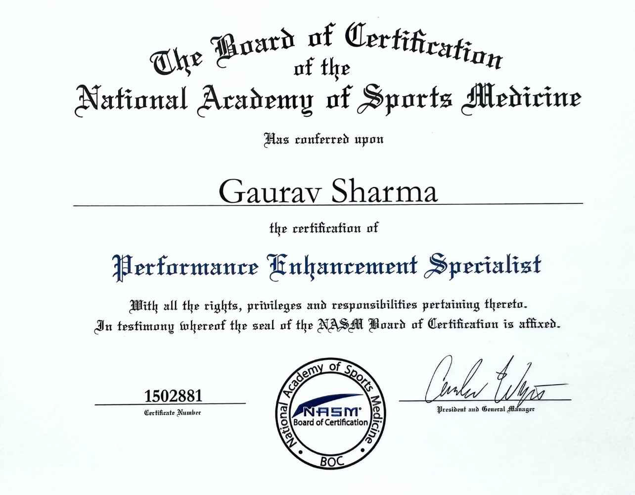 Performance Enhancement Specialist (PES) from National Academy of Sports Medicine (NASM) – One of the top credentials in sports performance training globally